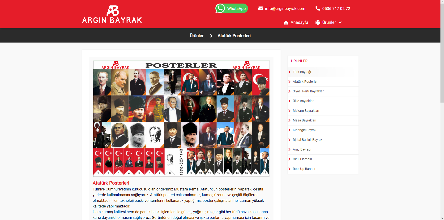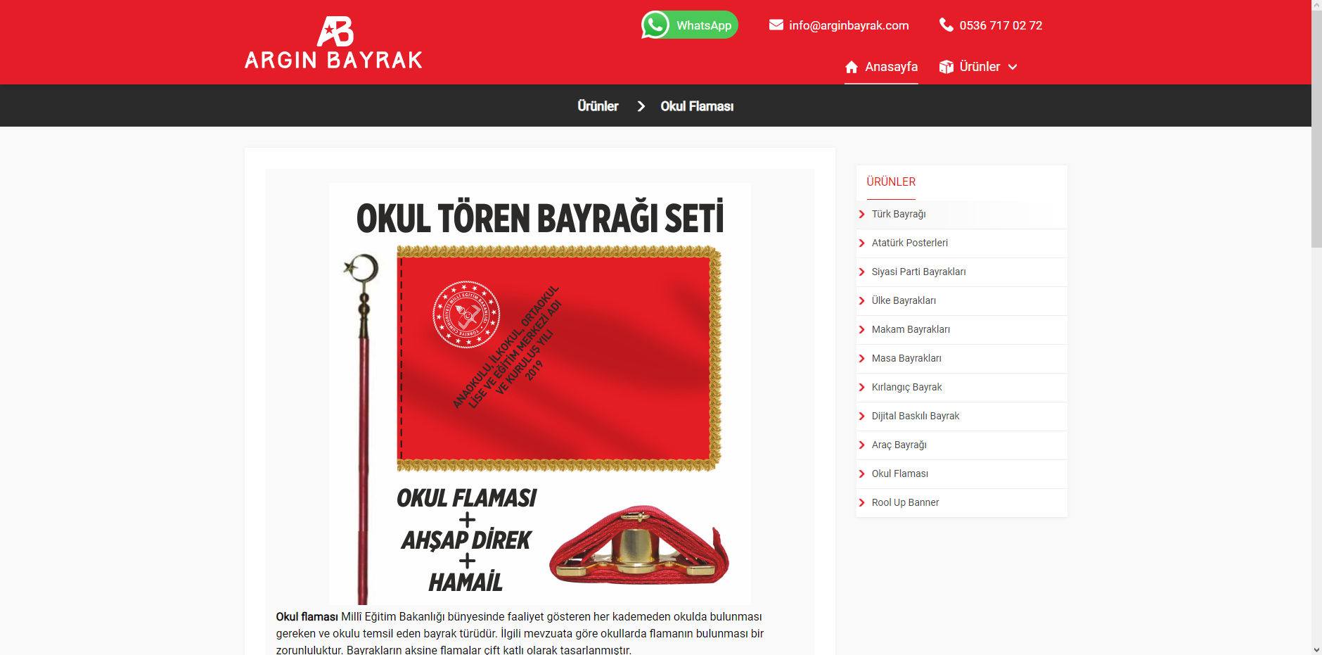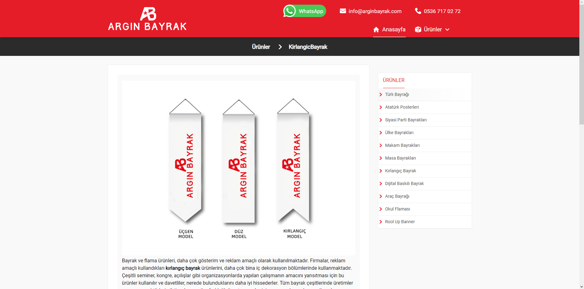 Argın Bayrak olarak, Türk bayrakları, gönder bayrakları, meydan süsleme bayrakları, kırlangıç bayraklar, dizili bayraklar, masa üstü bayrakları, makam ve tören bayrakları, sopalı bayraklar, eski ve yeni Türk devletleri bayrakları ve her bayrak türünün her boy ve çeşitlerinde üretimini yapıp en iyi fiyatlar ile sunuyoruz.