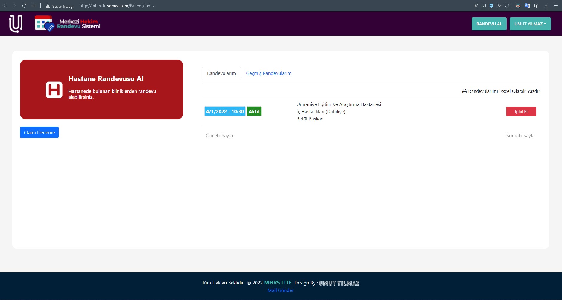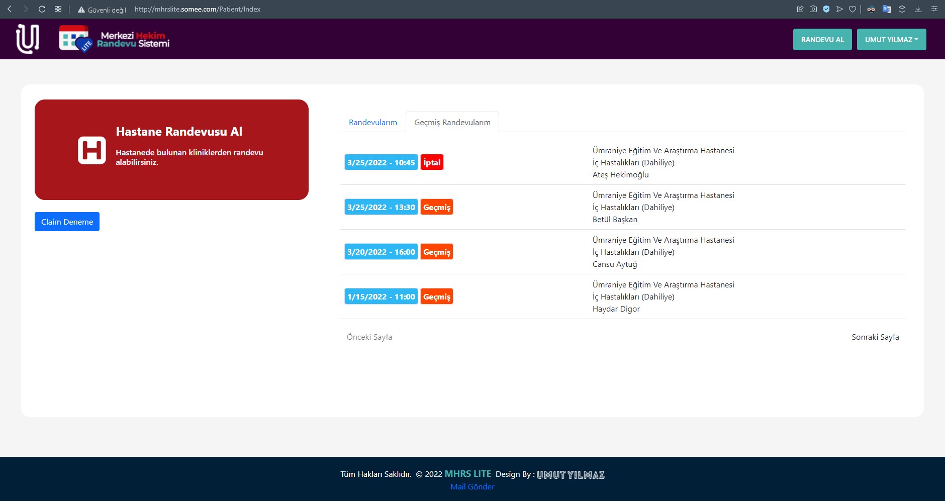 MHRS Lite ise; tıpkı MHRS gibi çalışan daha basit bir versiyon olarak kendimi geliştirmek için yaptığım bir randevu sistemi projesidir.